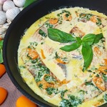 Вкуснейшая, нежная и ароматная рыбка в чудесном соусе! Готовить, действительно, просто и быстро. У меня филе форели, шпинат брала замороженный. Спасибо большое за прекрасный рецепт!