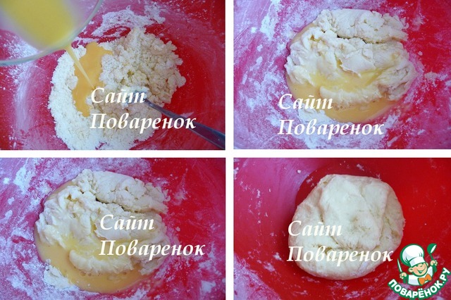 Тесто выложить на рабочую поверхность, слегка припылить мукой.