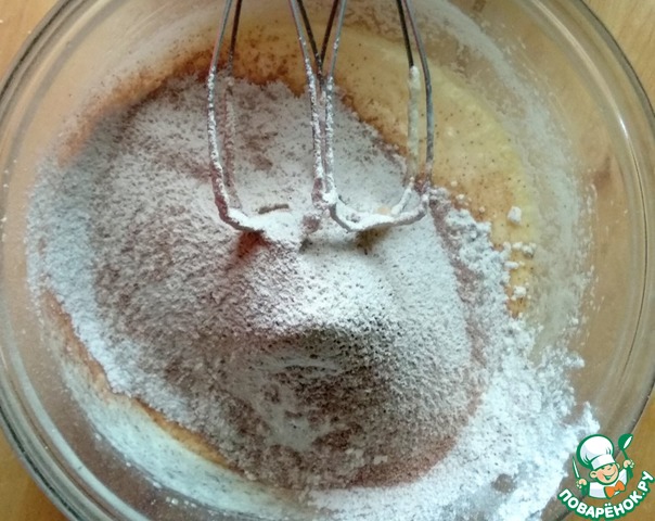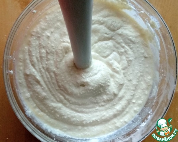 Добавить поочередно по одному яйцу, взбивая миксером.
