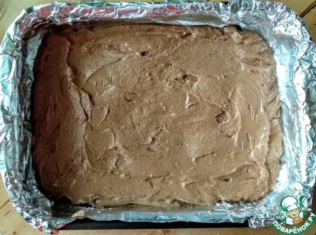 Форму для выпечки застелить фольгой или пергаментом. Разложить 3/4 части теста.