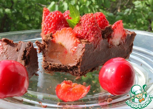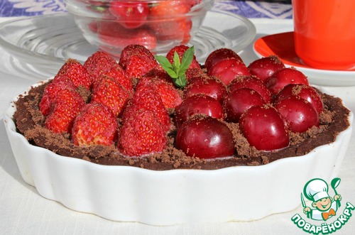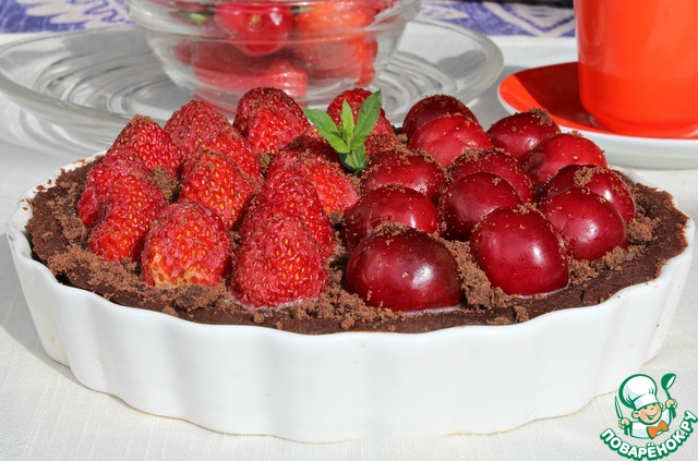 Тарт делала для себя и мужа - поэтому для нее и для него - муж любит клубнику, я люблю черешню, муж предпочитает молочный шоколад, а я темный и не менее 75% какао. Все учла и вот он, шоколадный тарт на два вкуса. Пробуем?