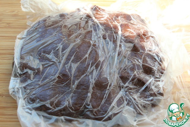 Тесто заворачиваем в пленку и убираем на 30 минут в холодильник.