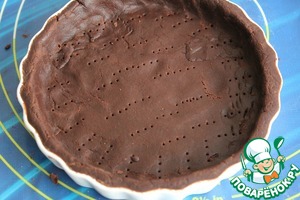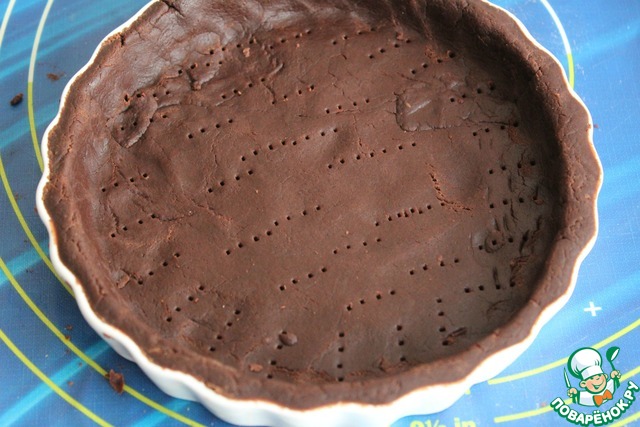 Раскатываем тесто между двумя пленками и выкладываем в форму для тарта. У меня была форма на 15 и поэтому теста немного осталось - лучше брать на 16-17 см. Наколоть вилкой.