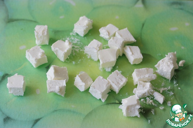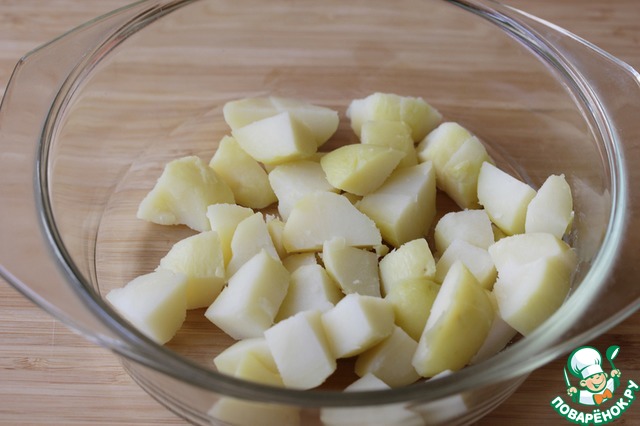 Охлажденный картофель очистить и нарезать на двольно крупные кусочки.