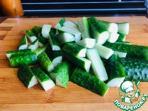 1. Огурцы моем и нарезаем брусочками.
