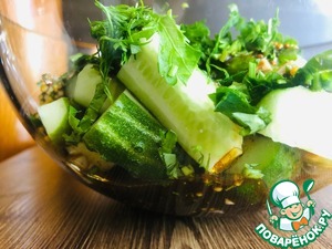 3. В миске соединяем огурцы и зелень.