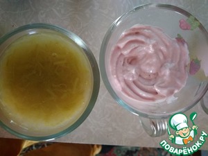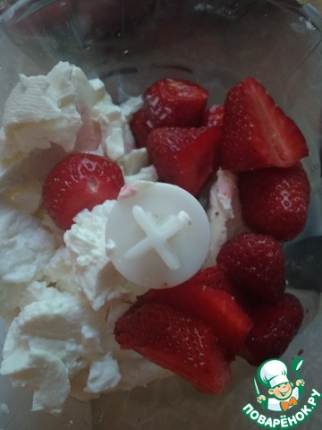 Для клубничного слоя взбить всё блендером.