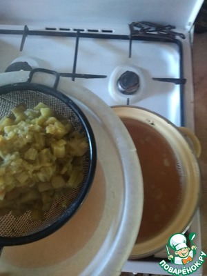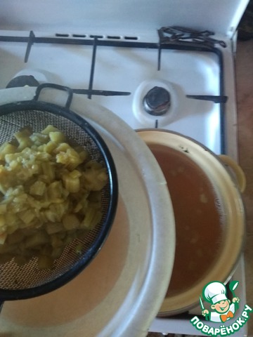 Вынуть мякоть и протереть через сито, или же пробить всё блендером.