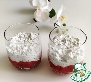 Разложить ягодный кисель в порционные прозрачные стаканчики. На такое количество используемых ингредиентов у меня получилось 2 порции. Затем сверху ложкой разложить чиа-пудинг.