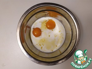 В желтки добавим оливковое масло и молоко.