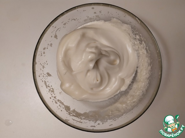 Белки так же густо взобьём, постепенно добавляя сахар.