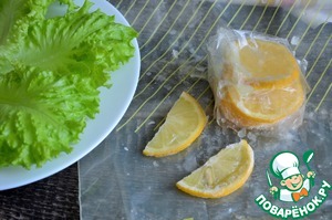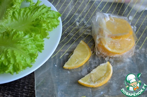 • Для подачи вымыть, обсушить листья салата, нарезать лимон.