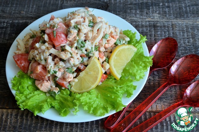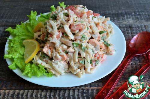 Рецепт «Салат с кальмарами, сёмгой и рисом»: