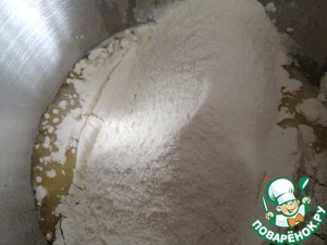 Готовим тесто для блинов. Смешиваем все ингредиенты, добавляем растопленное сливочное масло.