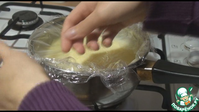Готовый крем накрываем пищевой плёнкой в контакт. Это мы делаем для того, чтобы при остывании не образовалась корочка. Оставляем полностью остыть.