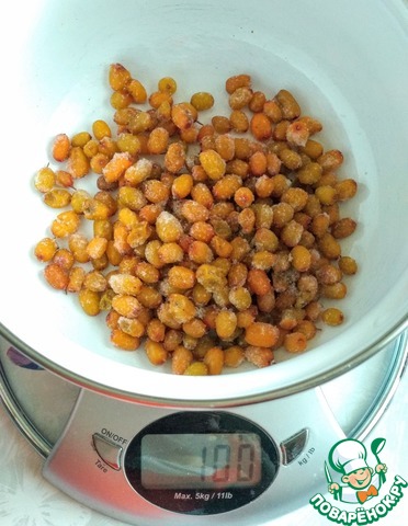 Облепиху (у меня замороженная) залить 300 мл. воды. Поставить на огонь, довести до кипения и варить на среднем огне 5-7 мин.