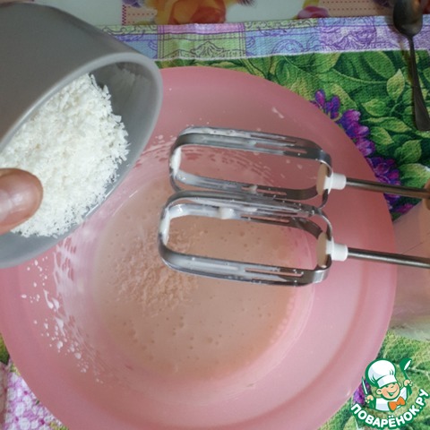 Добавить сахар и кокосовую стружку. Если хотите послаще, то кладите больше сахара.
