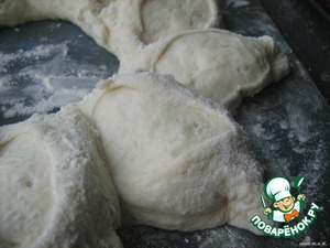 Переложить их на присыпанное мукой полотенце. Сверху еще обсыпать мукой. Прикрыть сверху другим полотенцем и дать еще подойти вдвое.