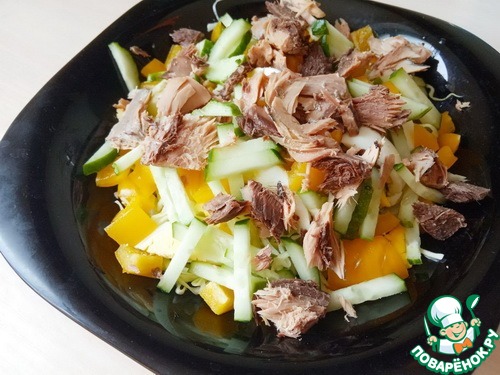 Легкий салат с молодой капустой, огурцом и тунцом. Очень вкусный, свежий, сочный, хрустящий и не вредит фигуре, из доступных продуктов. Он может заменить полноценный обед, особенно в жару. Заправку в салат можно использовать любую по вашему вкусу (сметана, майонез, йогурт с горчицей).