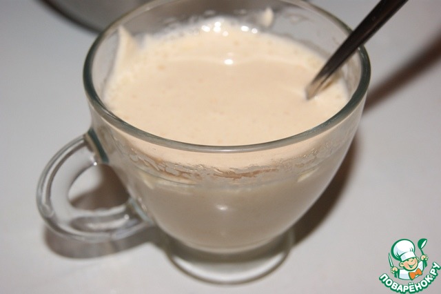 Масло и молоко комнатной температуры перемешать. Добавить в молочно-масляную смесь три ст. л. теста и перемешать до однородности.