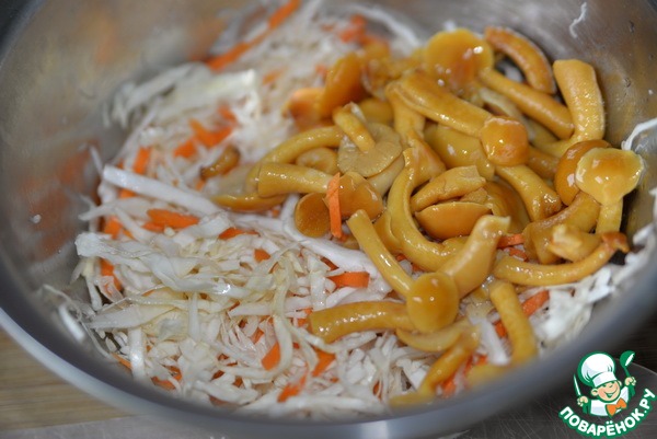 Ингредиенты для «Салат из капусты с маринованными опятами»:
