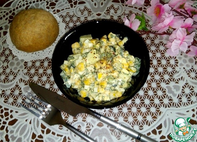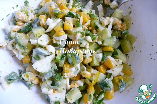 Рецепт «Салат с огурцом, кукурузой и яйцом»: