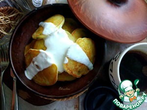 Снимая оладьи со сковороды, я на каждый выложу по небольшому кусочку сливочного масла. Складываю в глиняную посуду и накрываю крышкой.