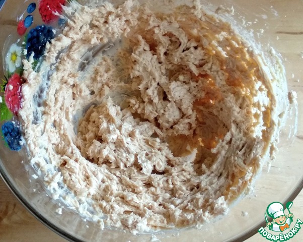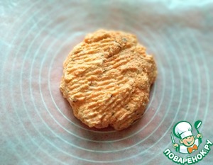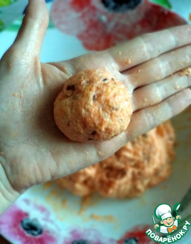 Затем надо оценить консистенцию массы, готовая смесь должна быть пластичной и легко скатываться в шарик. Мне потребовалось подсыпать ещё 40 гр. муки, всё зависит от сочности моркови.