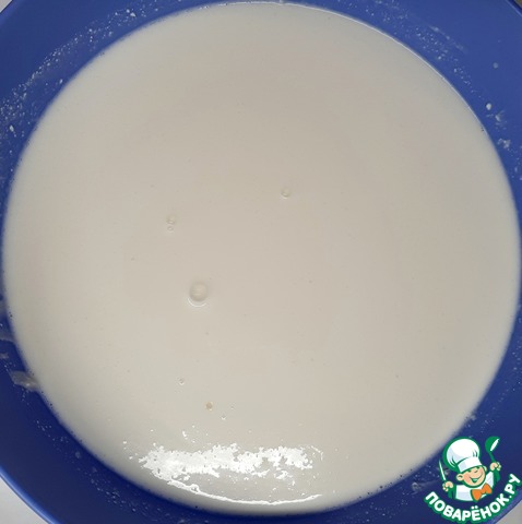 Желатин залить горячей водой не более 60°С и хорошо размешать до полного растворения. -
