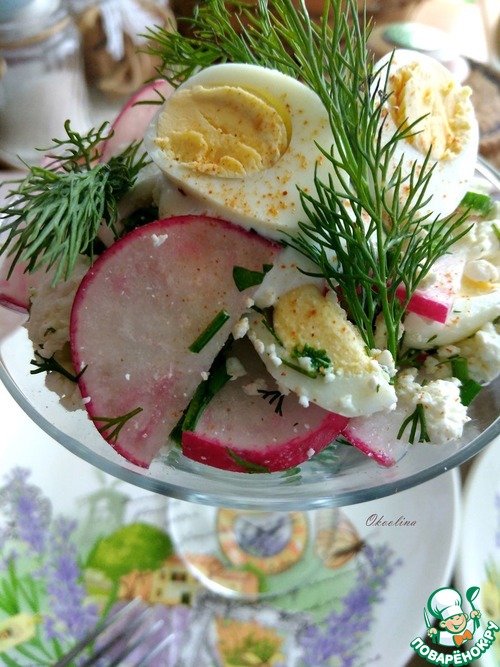 Самое любимое сочетания для меня в салатах с редисом, зеленью, яйцом - творог со сметаной, а сколько пользы!