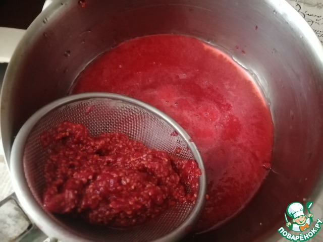 Добавляем сахар и желатин, если он быстро действующий. Если нет, то предварительно желатин заливаем водой для набухания, затем в микроволновке растапливаем и добавляем в тёплый малиновый сироп