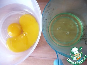 Затем нужно взять две большие миски и разделить яйца на белки и желтки. (Яйца должны быть комнатной температуры.)