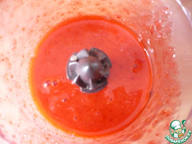 Теперь клубнику нужно измельчить в блендере, добавив к клубнике 50 г сахара. Измельчаем в однородное пюре и отставляем в сторону.