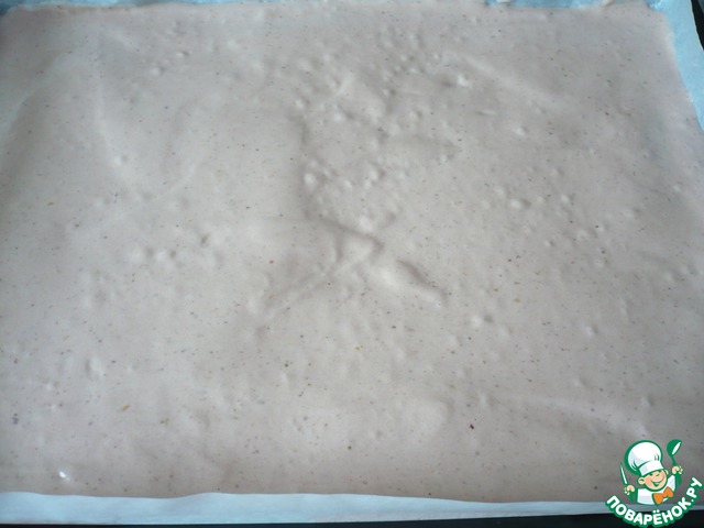Готовый бисквит после духовки должен "отдохнуть" 1,5 - 2 минуты, а затем лопаткой нужно пройти по краям противня отделяя бисквит от пергамента.
