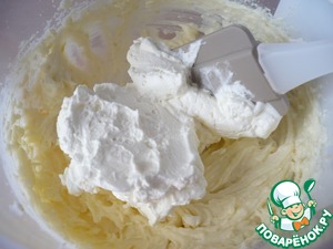 Теперь взбитые сливки нужно смешать с приготовленным сливочным кремом. Взбитые сливки добавляйте частями и аккуратно перемешивайте лопаткой.