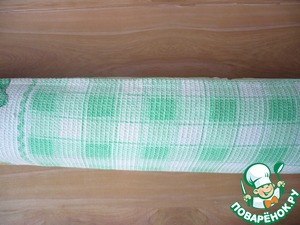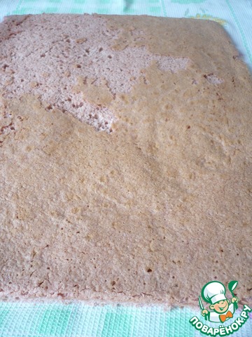Теперь бисквит заворачиваем в полотенце и оставляем остывать в свернутом виде.