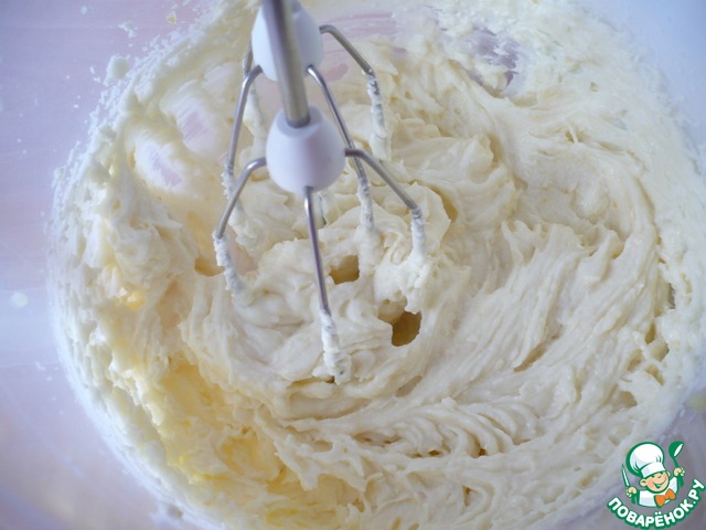 Всю массу хорошо взбить при помощи миксера, в однородную кремовую массу.