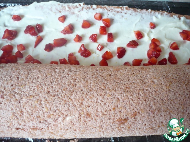 Рецепт «Клубничный бисквитный рулет "Летнее наслаждение"»: