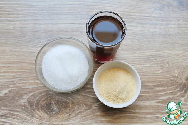 Подготовим все необходимые ингредиенты. Желатин зальем половиной стакана вина и оставьте на один час. Желатин должен набухнуть.