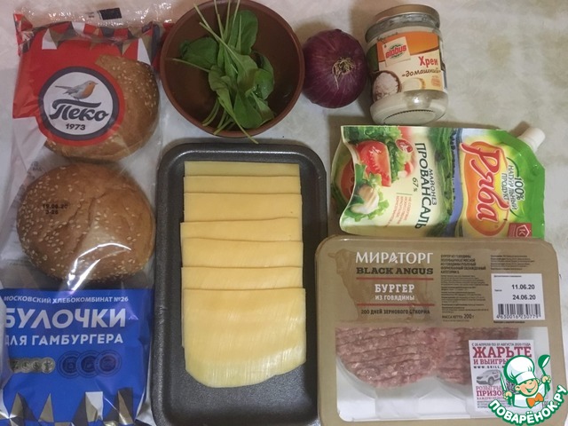 Ингредиенты для «Гамбургер с рукколой и красным луком»: