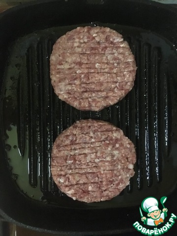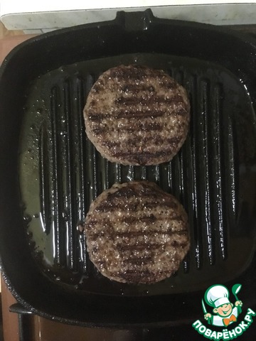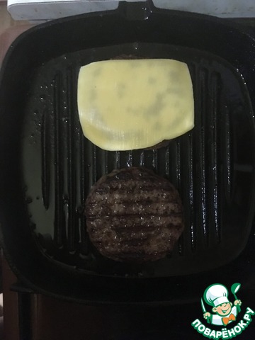 Доведя котлеты до готовности, выложить на них сверху по слайсу сыра и держать на огне ещё порядка 20 секунд чтобы сыр начал плавиться