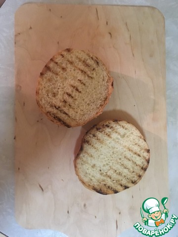 Подсушить булочки с обеих сторон, обжарив их на сухой сковороде