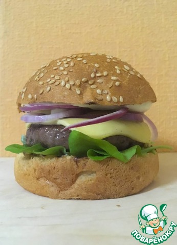 Рецепт «Гамбургер с рукколой и красным луком»: