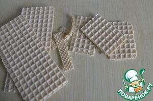 Для презентации закуски берём хлебцы, у меня вафельные или крекеры. Хлебцы режем на кусочки, удобные для подачи.