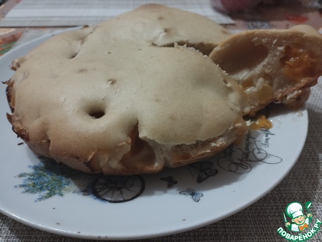У меня были только абрикосы, которые за 50 минут почти превратились в курагу Но всё равно получилось вкусно! Тесто отлично сочетается с абрикосами