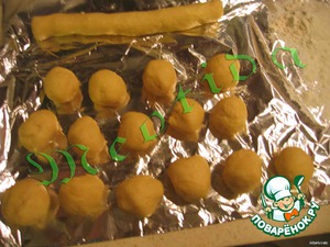 ии теста раскатываем три колбаски разной толщины, режем кусочками и формируем шарики разного диаметра