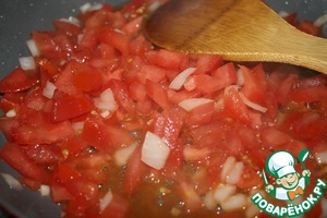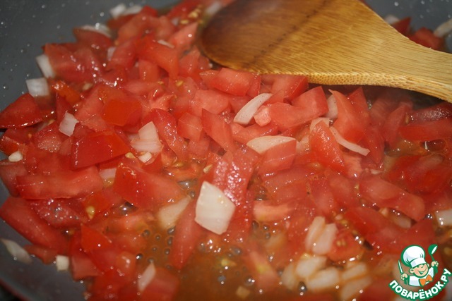 В оригинале рецепта разводили томат пасту водой и делали соус из нее, но я взяла по своему вкусу помидор.