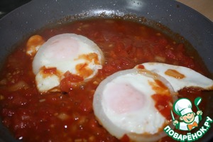 Затем вернуть яйца в соус и еще немного их прогреть вместе.