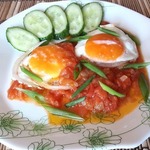Очень интересный вариант яичницы. Вкусная и пикантная. Рецепт с китайского кулинарного сайта.