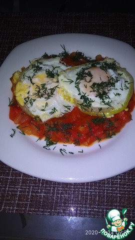 Рецепт «Яичница в луковых кольцах с овощами»: